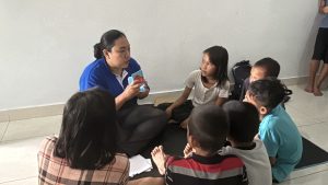 Sebanyak 19 anak panti asuhan mengikuti kegiatan pelatihan dengan antusias. Mereka diperkenalkan pada materi pengenalan diri (self-introduction) dan kosakata dasar tentang benda di sekitar (basic nouns). Melalui pendekatan komunikatif dan permainan bahasa yang menyenangkan, anak-anak diajak untuk berlatih memperkenalkan diri, menyebutkan nama, usia, hobi, serta mendeskripsikan benda yang mereka miliki menggunakan kalimat sederhana dalam bahasa Inggris.